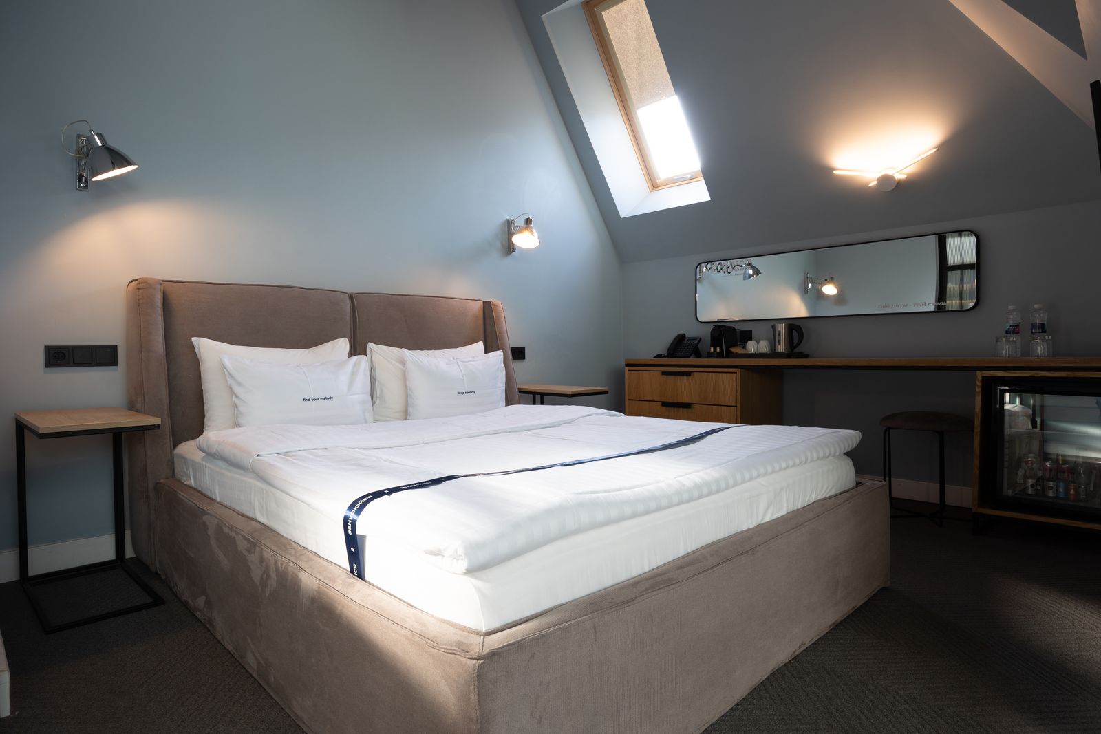 Wszystko tutaj jest idealnie dopasowane zarówno do przyjemnego odpoczynku, jak i do efektywnej pracy: wygodne meble, telefon, Wi-Fi, klimatyzacja, sejf, telewizja, mini lodówka.